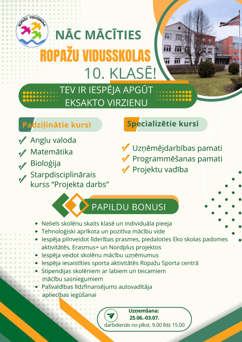 - Apliecības par pamatizglītību kopija (uzrādot oriģinālu)